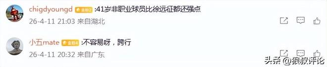 有球迷点评说道:41岁非职业球员比徐远征都还强点。