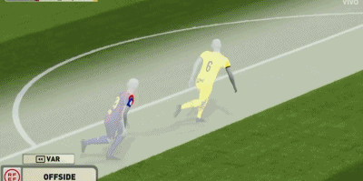 直到第63分钟,转播镜头才最终给出了VAR半自动越位系统的图像,这一画面显示头球传中的埃里克-加西亚越位非常轻微。